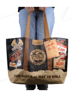 Ideal para llevar tus esenciales al trabajo, la playa o tus sesiones de relax, la RAW Tote Bag ofrece amplio espacio interior sin sacrificar ligereza. Su acabado negro con el logo RAW refleja la autenticidad de la marca y su compromiso con un estilo de vida natural y sin artificios.