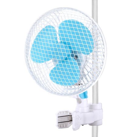 Ventilador Clip Fan Pinza Oscilante 6″ 2 velocidades 20W Dos velocidades, oscilantes 90° conFuerte clip con resorte para múltiples usos Potencia (W): 20 -Utilizado en la carpa de cultivo con clip en los postes. -Función de 3 en 1 ': ventilador de mesa, ventilador de pared, ventilador de clip -Cable de alimentación: 2 x 0.75 x 5 pies, enchufe UL